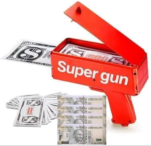 - Function:Â Users load the device with real or prop money. When the trigger is squeezed, a motorized mechanism rapidly fires the bills out in a “rain” of cash.